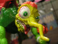 蚊と戦闘機を掛け合わせると何ができる? 答えは最もでかく、風変わりなタートルズの味方、ニードル・ノーズだ。 このイカス刈り込んだ頭の吸血軍隊ミュータントは二つの蜂探知ミサイルと手持ちメガマシンガンを手に常に戦闘体勢にある。 彼は6本の連結した腕と足、2枚の動く昆虫型の羽根を持つ。 ニードル・ノーズにはタートルが1人舌型の座席に座り、他何人かは横の方にぶら下がりながらフットめがけ飛行する。 それと回転式のテールガン、ガトリングガン、プラズマ式ロケットエンジンを持ち合わせている。 ※フィギュアはすべて別売りです。 |